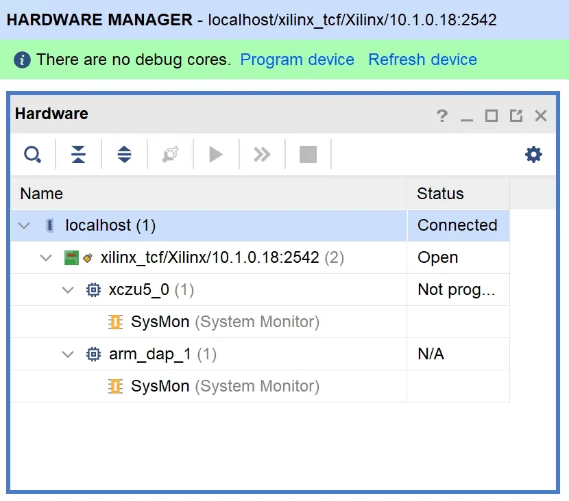 - 启动 Vivado,并打开 Hardware Manager 界面。
